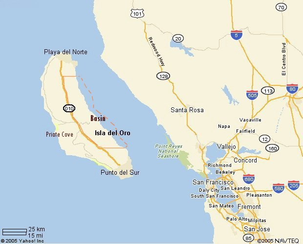 Isla del Oro About a hundred miles off the coast of north central California, and about the size of Rhode Island lies Isla del Oro. Originally called Nova Albion it was discovered first by Sir Francis Drake during his historic voyage around the world. On July 29, 1579, the Golden Hind and her smaller consorts dropped anchor in a sheltered bay on the south western corner of the island. Drake proclaimed it Nova Albion and he and his crew spent several weeks there gathering food and repairing their ships. The natives proved to be very friendly and helpful. The weeks turned out to be the most idyllic time the Sea Dogs of Queen Elizabeth. When they sailed off it would be another 23 years before the island was again visited by white men. Rediscovered in 1602 by a ship crewed by pirates and running from the Spanish Navy, this island became a haven for the eastern Pacific brotherhood. The western side of the island is rugged, much as the coast of California to the north of the Golden Gate, while the eastern coast is flat salt marshes like the terrain around Drake's Bay. Over the centuries, two very different settlements have formed, to the north, Playa del Norte and to the south Punta del Sur. Punta del Sur was, from the beginning, the preferred site for the richest of the pirates and over the centuries, that hasn't change. Now the southern city is a thriving tourist Mecca of over a half million people. To the north, Playa del Norte has become the more reasonably priced city that has become almost exclusively a service industry bedroom community to the south. From here, the majority of the one hundred-fifty thousand population commutes via trains and the single major highway to work in the hotels and restaurants of the south. Some few have found jobs in the many estates the line the western coast of the island as cooks, maids and gardeners. The social classes of the island has become a marked as Victorian England or the Upper/Lower split of Midgaard. As the years go by this separation has grown until there are now places on the Eastern coast that the West Coasters and Southerners have no idea exists. One such place is a festering sore called the Basin. Tabitha Alcoy aka Dusty Bottoms Past Factions NPCs